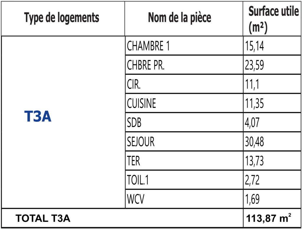 Appartement T3 (113,87 m²), de 09 pièces, haut standing , avec terrasse, 01 parkings, idéal pour famille et investissement !