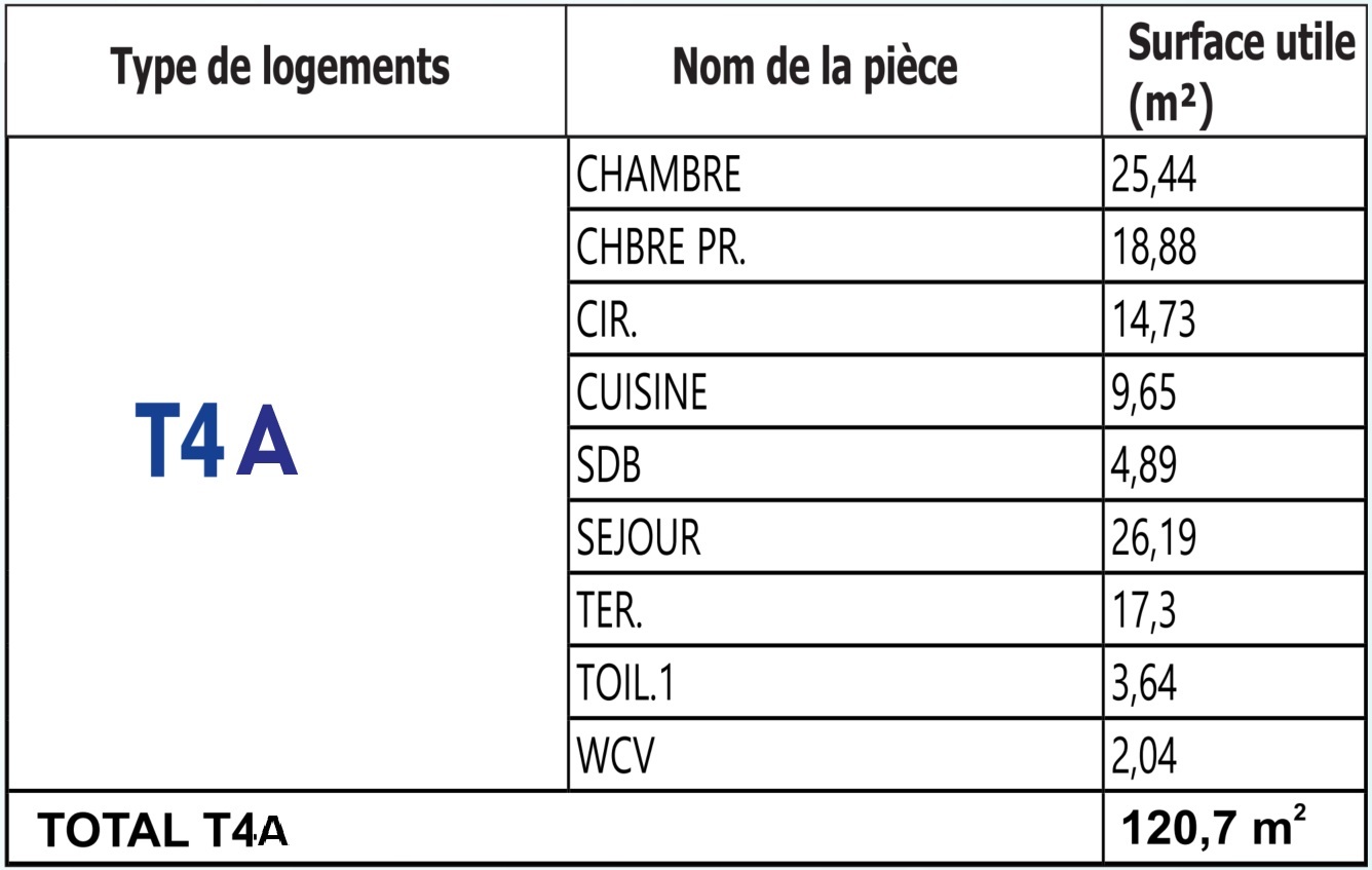 Appartement T4 (120,7 m²), de 09 pièces, haut standing , avec terrasse, 01 parkings, idéal pour famille et investissement !